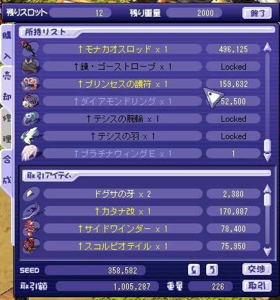 レベあげ終わって、水晶1で小銭稼ぎ。